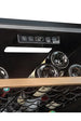 Cette cave est équipée d'amortisseurs qui absorbent les vibrations provenant de l'extérieur et de l'intérieur. Le vieillissement du vin n'est pas compromis et le fonctionnement de la cave est particulièrement silencieux.