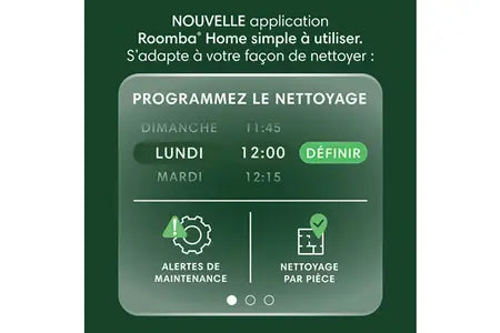 L'appareil est compatible avec les assistants vocaux et avec l’application Roomba® Home avec laquelle vous pouvez personnaliser votre nettoyage. Profitez ainsi des commandes vocales** et vous pouvez même créer des zones de nettoyage et des zones à éviter.