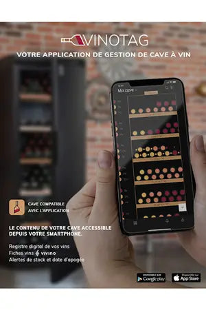 Les points forts Capacité 102 bouteilles ("type Bordeaux 75 cl") - Dimensions (HxLxP) : 127.7x55x58.5 cm - 38dB Double zones de température -5 Clayettes fils d'acier avec fronton bois Porte vitrée anti-UV réversible - Cave connectée...Prix normal € 649,99Prix normal € 649,99Incl. tax: -