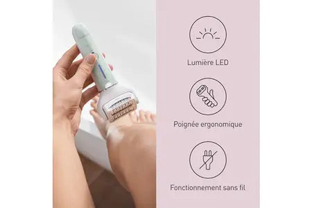 Les points forts Tête d'épilation orientable à 90° avec double disque de 60 pincettes 3 réglages de vitesse, prise en main facile - Lumière LED avec capteur de pression Rechargeable - 30 min d'autonomie - 100%...Prix normal € 109,99Prix normal € 109,99Incl. tax: