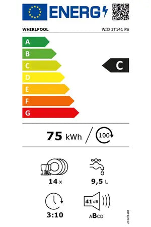 Le lave-vaisselle tout intégrable Whirlpool WIO3T141PS, bénéficie d'une capacité de 14 couverts, 10 programmes dont le programme 6 ème SENS, d'une Option PowerClean Pro qui garantit 30% d'espace de lavage supplémentaire. Il est doté également d'une porte à glissières pour une adaptabilité maximale à toutes les cuisines, même de grande hauteur, son moteur à induction permet de fonctionner en silence et d'améliorer sa durée de vie et d'une Cuve 100% inox.