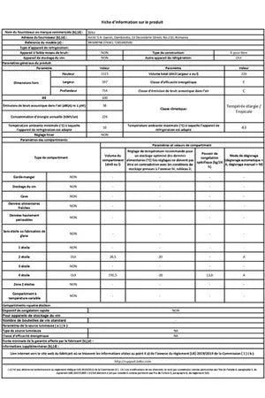 - Volume 220 L - Dimensions (H-L-P) 151,5x59.7x74.4 cm - Classe E - 38dB