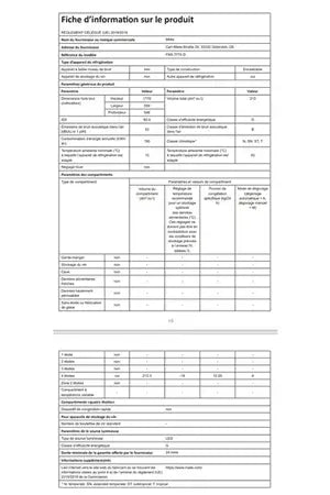 - Encastrable - Volume 213 L - Dimensions : (H-L-P) 177x55.9x54.6 cm - Classe D - 33db