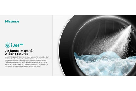 La technologie iJet réalise un mélange eau-lessive en amont, optimisant la dissolution et la pénétration du détergent dans les fibres. Résultat : un lavage plus uniforme et des taches traitées en profondeur, sans effort. Cela permet aussi de laver à froid avec une efficacité renforcée.